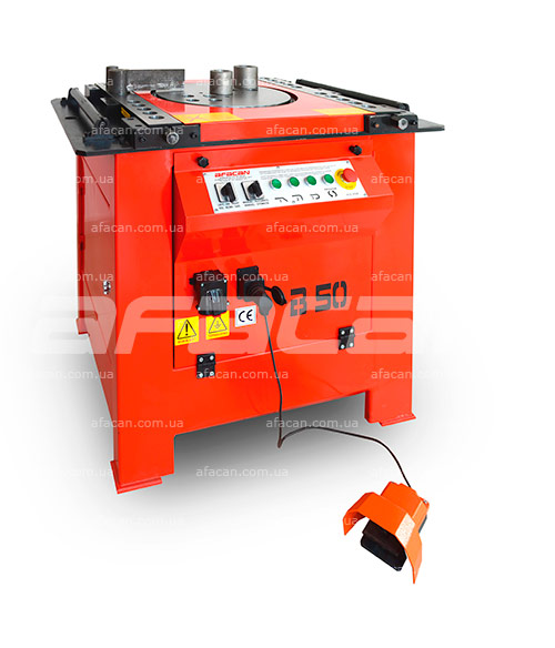 Електричний верстат для згинання арматури AFACAN В50 призначений для гнуття в холодному стані арматурних прутів діаметром до 50 мм. Широко застосовуються під навісом на будівельних майданчиках і на заводах ЗБВ.